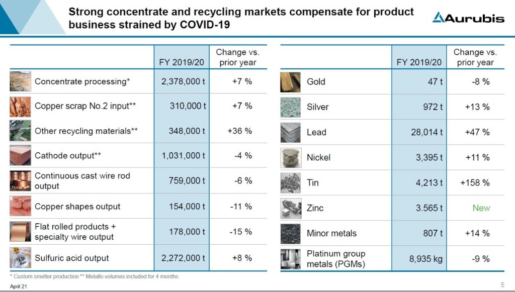 Una valiosa fuente de información sobre la relación, concentrado de cobre embarcado y subproductos, son las refinerías. Ahora bien, existe el resultado que nos presenta la refinería Aurubis (Hamburgo, Alemania) en su informe “Metal for Progress” 23 de marzo 2022, el procesamiento se refiere a 15 subproductos donde la relación del concentrado, según el quantum (incluyendo el cátodo), corresponde a 12% de mineral de cobre y 88% de subproductos. Los subproductos en la información se refieren a desechos, reciclaje, alambrones, coppershapes, cátodos, planchas de cobre, ácido sulfúrico, oro, plata, plomo, níquel, estaño, zinc, metales menores y platino. Tres de subproductos, oro, plata y platino, corresponden 0.02% del quantum del concentrado en toneladas, pero representan 31,2% del valor del mercado del total de los subproductos, medidos a precios de mercados vigentes a la tercera semana de abril (2022). El Informe de Aurubis está fechado en 2022, pero los minerales procesados se refieren al período 2019-2020, véase en la página 6 del Informe Aurubis AG el cuadro titulado “Fuertes mercados de concentrados y reciclaje compensan el tenso negocio de productos a consecuencia del Covid-19” Año 2019/2020 (Strong concentrate and recycling markets compensate for product business strained by Covid-19).