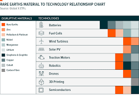 FUENTE: GLOBALX ETFs: RARE EARTHS MATERIAL TO TECHNOLOGY RELATIONSHIP CHART.