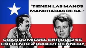 “Usted, le dijo, ha venido aquí no interesado por nuestros problemas ni a buscarles solución. Usted está trabajando su campaña para la presidencia de Estados Unidos. No le acepto que venga a utilizarnos a nosotros para fines personales suyos. Si quiere chistes y hacer reír, yo también puedo contarle varios que se refieren a Vietnam, o a la explotación de nuestros obreros por capitales y sociedades nacionales y extranjeras. Vamos a Pueblo Hundido, junto a las minas de carbón de Lota, y allí podrán reírse ustedes hasta las lágrimas viendo tanta miseria y abandono”.